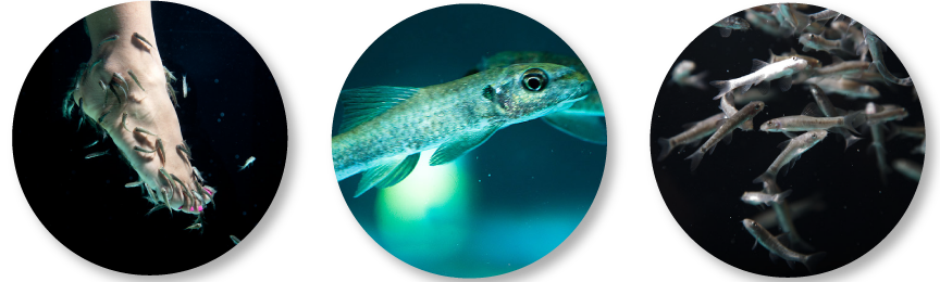 Durant segles els peixos “garra rufa” han estat utilitzats com a cura natural de la pell dels peus als rius i piscines calentes de Turquia i l’Orient Mitjà. Els nostres peixos son especialistes en succionar les capes mortes de l’epidermis i, gràcies a l’enzima diathanol que deixen sobre la pell, aquesta queda rejovenida, fresca i saludable. Què se sent amb la pedicura amb peixos? És com submergir els peus en un jacuzzi de cava bombollejant. Mitjançant la nostra ictioteràpia, els peixos van directament a tractar les zones malmeses de la teva pell.